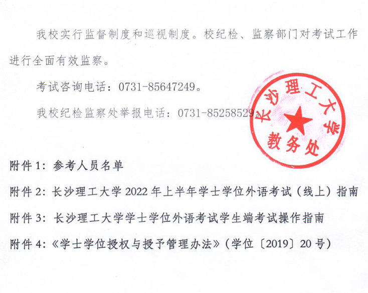 2022年上半年长沙理工大学高等继续教育学士学位外国语水平考试开考通知